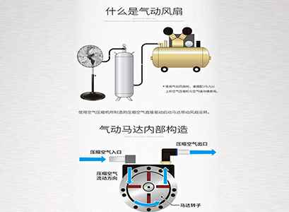 使用空气压缩机所制造的压缩机空气驱动马达,带动风扇运转。